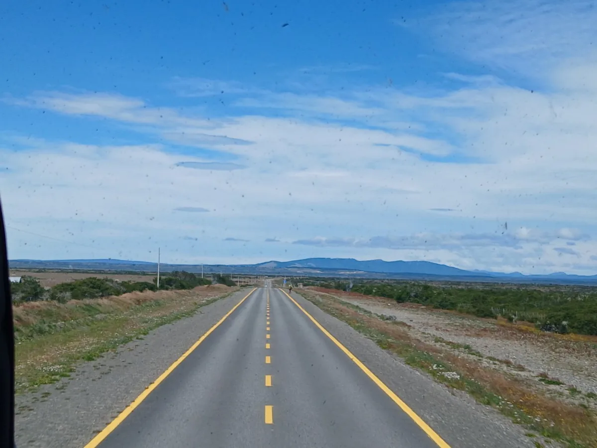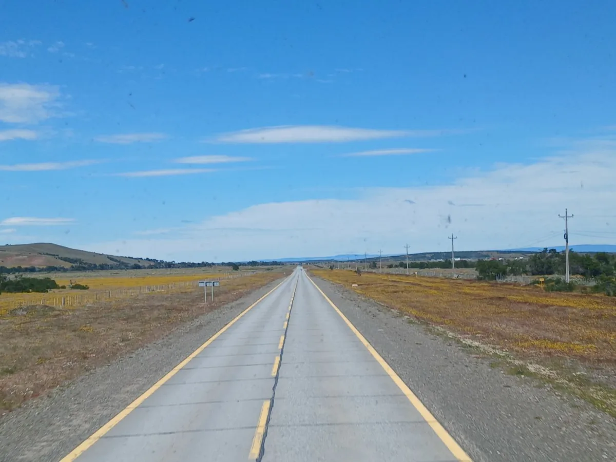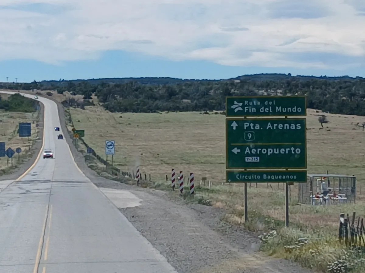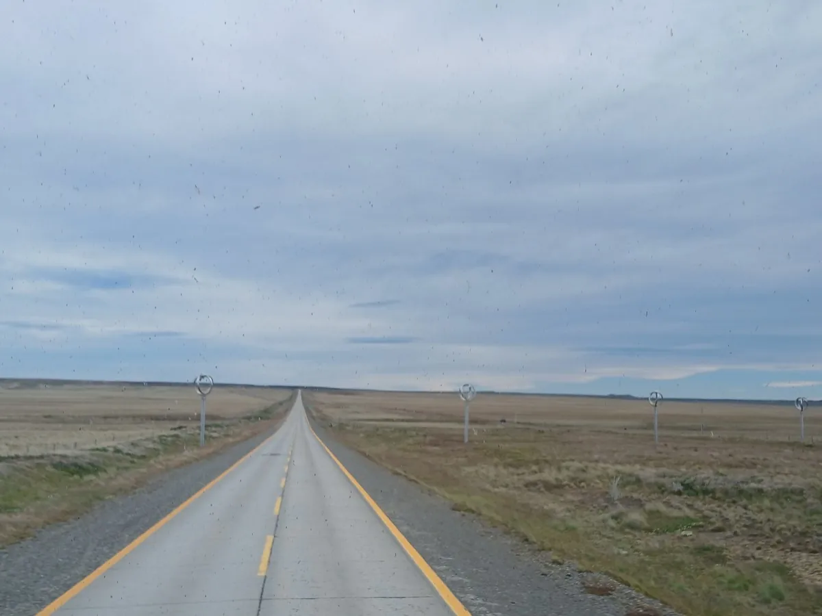 13h30, je vais à la station de bus qui est à 5 min à pied. Mon bus Bus Sur pour Punta Arena est à 14h (8 000 CLP). J’ai réservé la place devant la vitre en haut et je ne regrette pas. Punta Arenas est à 250 km au sud et la Route 9, aussi appelée, route du bout du monde, est magnifique ! Quasiment 250 km de ligne droite au milieu de la steppe. On croise pas mal de moutons qui broutent, des chevaux, quelques éoliennes (ça souffle grave !) et une voiture qui a fini accidentée dans la steppe… Malgré quelques petits sommes, j’en prends plein les yeux !