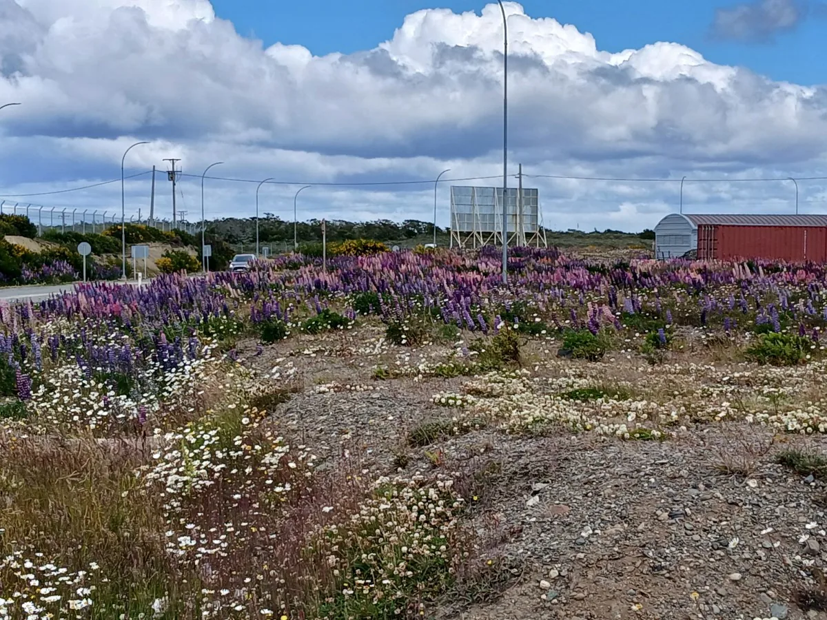 Réveil vers 8h. Oh, le petit déj est inclus ici ! Mais c’est la même chose que ce que je mange d’hab lolll Mortadelle et fromage… Matinée à la cool (un peu comme le chat) : douche, check-out à 11h, préparation de mon programme à l’île de Pâques… Il fait beau, un peu frais et toujours beaucoup de vent. Déj à l’hostel pour finir mes pâtes, enfin surtout la sauce tomate. 14h, je commande un Uber pour aller à l’aéroport (13 300 CLP). Oh un champ de lupins violets près du parking, je mets la photo car il y en avait plein sur le route du retour de Torres del Paine mais on était trop crevés pour s’arrêter.