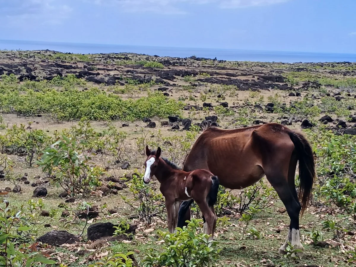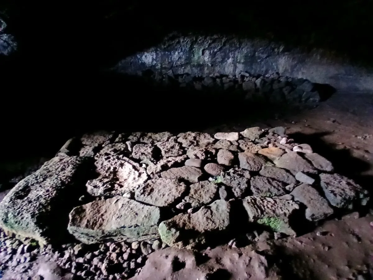 - Ana Te Pahu : c’est la plus grande caverne de l’île, étendue sur plusieurs kms. Elle fut utilisée comme abri provisoire par un clan puis devint un cimetière. Elle a été formé lors de l’une des éruptions de l’île. On est rentré par un côté, marché environ 150 m et on est ressorti par un autre côté.