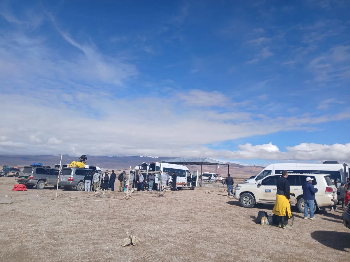 Nuit nickel, petit déj à 6h, départ 6h30. Il pleut encore… Le chauffeur speede bien, je crois qu’on a une meilleure jeep. Au final, au lieu des 2h prévues pour atteindre la frontière bolivienne, à Ollagüe du coup, on ne met qu’1h. On attend maintenant l’ouverture de la douane. Elle finit par ouvrir un peu après 8h. Cette frontière est plus longue que celle de l’aller car ils vérifient tous les bagages un par un… Enfin vite fait mais il faut quand même tout descendre. Au final, on s’en sort pas mal, on la passe en 1h. Nous voici ensuite dans le no man’s land avant la frontière chilienne. On doit attendre notre van et d’autres jeeps pour remplir le van, bilan : 3h d’attente… Notre van arrive, chargé de personnes qui, elles, vont à Uyuni. Donc on doit attendre qu’elles finissent leur petit déj. Ouh, je retrouve une de mes copines brésilienne insupportable loll 11h30, on se met enfin en route vers la frontière chilienne, a priori plus stricte. On passe van par van mais notre chauffeur doit se faire piquer sa place car des vans arrivés après nous passent avant. On s’impatiente un peu. Notre tour finir par arriver, il faut se dépêcher pour passer. Contrôle passeport, on nous redonne un PID, puis formulaire SAG (pour les denrées alimentaires), puis 2è endroit pour le contrôle des bagages. On finit par ressortir vers 13h, c’était long car on est quand même là depuis 7h30 ! L’avantage de passer quand même la frontière à cet endroit, c’est qu’on va passer par Calama, la ville où je dois prendre mon bus de nuit en fin de journée, ce qui m’évite le bus San Pedro de Atacama / Calama. Au niveau des horaires ça revient au même car on aurait dû arriver à SPA vers midi. Bref, le chauffeur speede bien ms fait pls arrêts rapides pour se passer de l’eau sur la tête, aurait-il un coup de barre ? Car lui aussi est parti depuis 4h du mat… on arrive à Calama vers 15h, petit arrêt essence et il me dépose ainsi que qq autres personnes au terminal de bus. Il emmènera même Martin à l’aéroport et on ne paiera finalement pas de supplément, je crois que ce sont les personnes qu’il a emmené à la frontière qui l’ont payé.