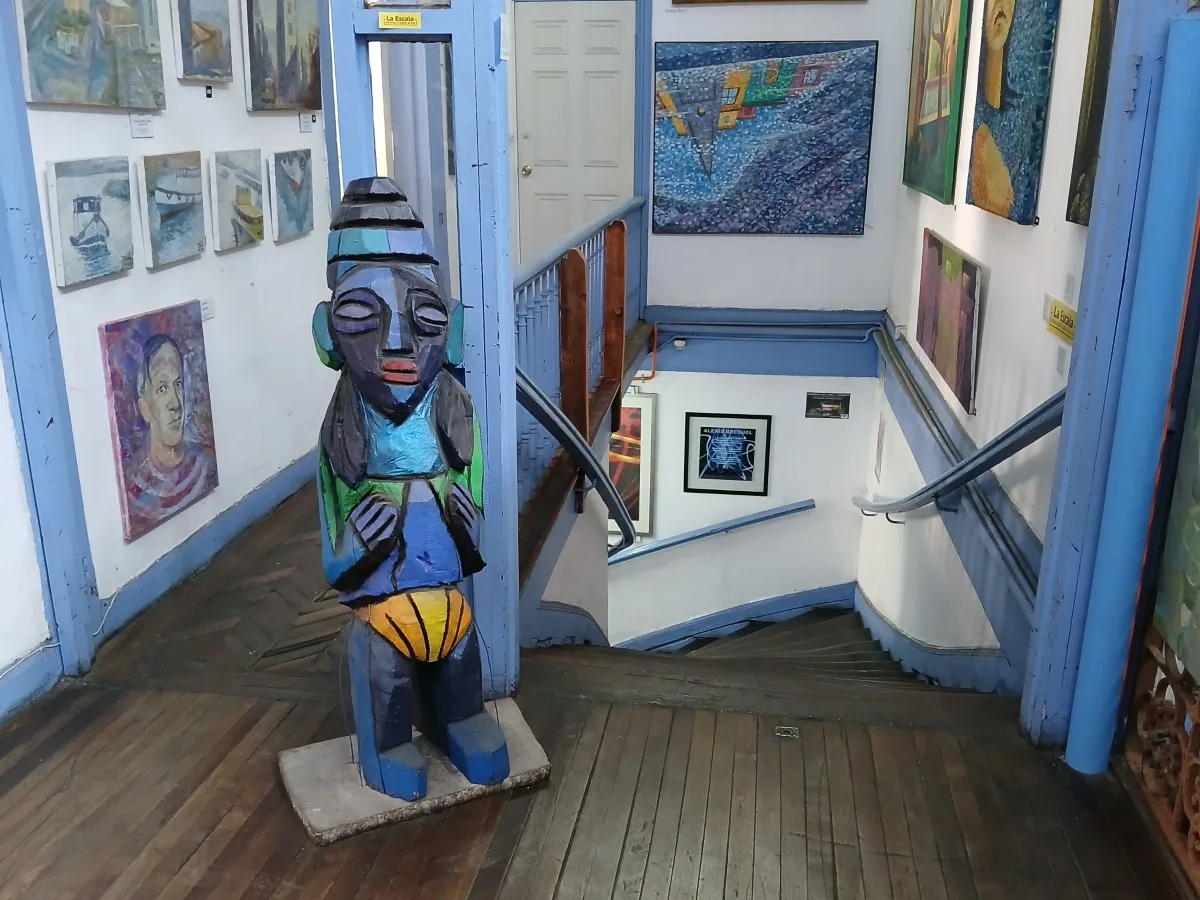 Nous commençons la visite par le quai Prat, construit sur la mer car la ville avait besoin de s’étendre et est coincée en arrière par les collines. Puis nous montons sur la terrasse d’un bâtiment en construction pour une vue d’ensemble de la ville. Ensuite, une galerie d’artistes construite dans une ancienne maison, puis une caresse à Carolo, un chat emblématique de la ville. On prend ensuite un funiculaire pour monter sur les Cerros Conception et Allegre. Les maisons sont construites en torchis et recouvertes de tôles, peintes. On s’arrête ensuite dans une autre galerie d’artistes où je craque pour un lama en céramique 😉 Et oui, le voyage se termine gentiment donc je pense un peu aux souvenirs.