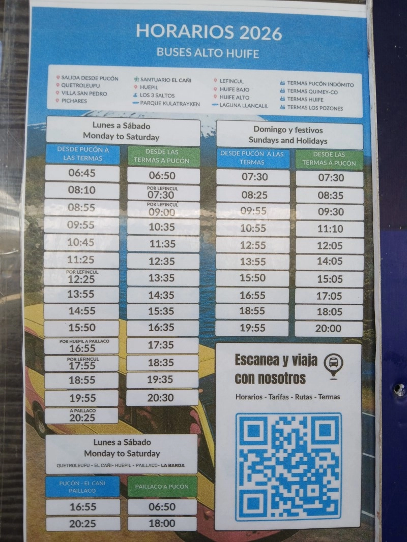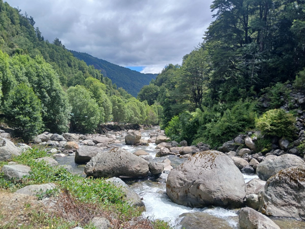 Réveil vers 8h, début de matinée tranquille pour préparer ma prochaine étape, Puerto Varas. Aucune courbature aux jambes, juste dos / cervicales à force de regarder où je mettais les pieds loll Raíz m’aide à rédiger le blog (il doit s’y reprendre à plusieurs fois car il dépasse de mon ordi et manque de tomber) puis déj mini-raviolis que j’ai achetés hier, mais pas foufou, ils ont oublié d’en fourrer plein loll 13h, je pars en ville pour prendre un mini-bus pour les Thermes Los Pozones, les plus naturels, creusés à même la roche, juste à côté de la rivière. Le bus se prend au terminal Pullman (5 000 CLP l’A/R). Le bus part à 13h55 donc j’ai le temps d’aller me balader un peu. Arrivée au thermes à 14h45, le ticket se prend sur place (15 000 CLP pour 2h sur place). Ensuite, il faut descendre une route bien raide pendant 15 min pr accéder aux thermes et en fait, si, je sens mes jambes lolll En bas, il y a 6 petits bains, on dit de commencer par celui du fond, le plus frais mais il est entre 38 et 42 degrés. Celui d’avant 35-37 est le plus agréable. Le site est désert, on doit être une dizaine, c’est top !