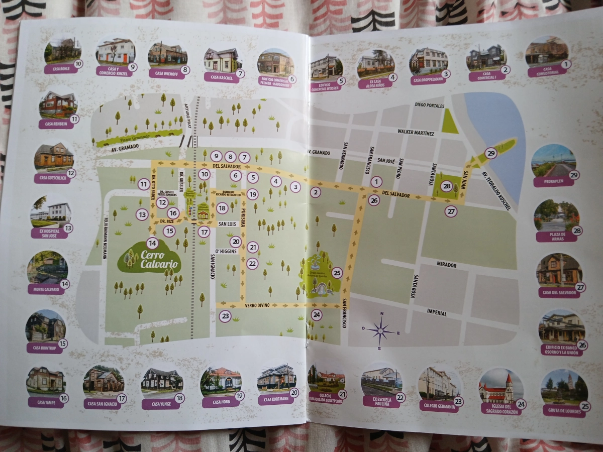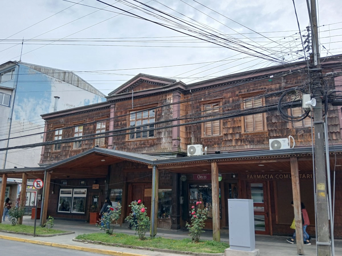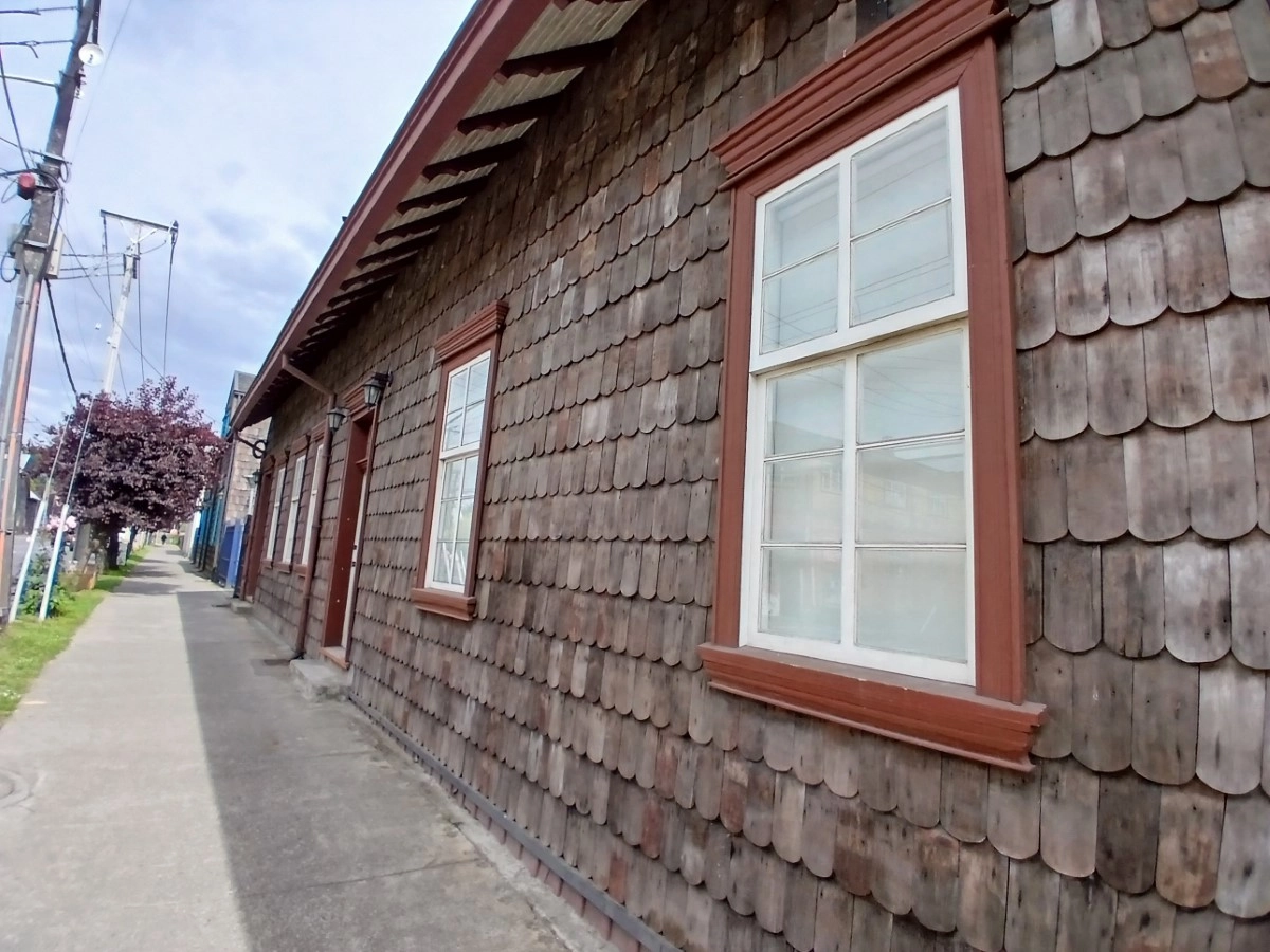Réveil 8h, il fait gris mais il ne pleut pas. Je me prépare un petit déj et je commence à changer mon itinéraire. En revanche, si le ferry est encore retardé, je n’aurai pas le choix et je devrai annuler le ferry et prendre un vol à la place, je croise les doigts. Vers 10h, je sors faire le tour des maisons historiques de la ville, il y a un petit plan pour ça 😉 Classée en 1992 au Patrimoine historique chilien, la ville est caractérisée par une architecture coloniale typiquement germanique. La structure globale s’assimile à de grands chalets de bois couverts de bardeaux. Les tuiles dites tejuelas sont taillées le long des veines du bois d’alerce, puis découpées selon des formes géométriques plus ou moins élaborées. Voici un petit aperçu !